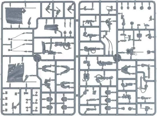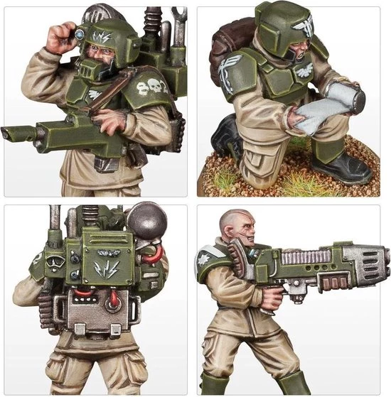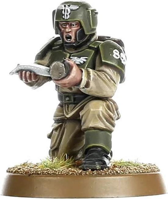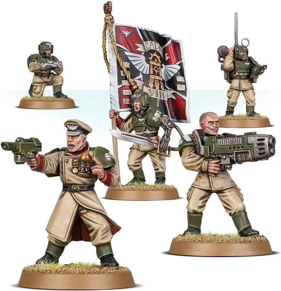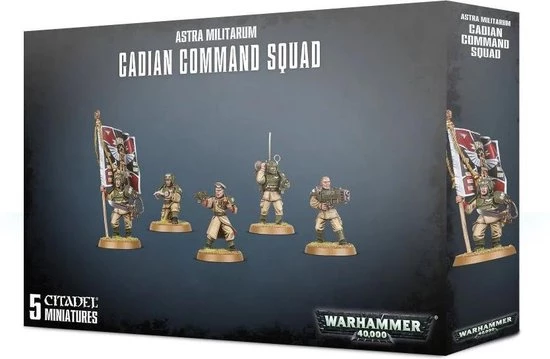 De Astra Militarum is een enorme gevechtsformatie en om haar operaties soepel te laten verlopen is een substantiële commandostructuur nodig. Compagniescommandanten worden begeleid door een zorgvuldig uitgekozen stoet van door de strijd gehavende veteranen die hun leider in het veld ondersteunen. Afhankelijk van de situatie kunnen ze de aanval naar de vijand leiden of het onbeweeglijke centrum van de Astra Militarum-linie vormen. Met deze set kun je vijf Cadian Command Troopers bouwen, waaronder een Company Commander, een Medic, een Special Weapon Trooper, een Vox-caster en een Guardsman met Company Banner. Het team kan worden bewapend met een keuze aan wapens, waaronder een sluipschuttersgeweer, een zware vlam, een plasmakanon, een granaatwerper, een vlammenwerper, een meltagun, een powerfist, een kettingzwaard, een krachtzwaard, een plasmapistool, een boutpistool en een laspistool. Ook inbegrepen zijn twee verschillende Company Banners, een verscheidenheid aan hoofden en extra accessoires waarmee je het squadron kunt aanpassen. Deze kit wordt geleverd in 79 plastic componenten en wordt geleverd met 5 Citadel 25 mm ronde voetstukken.