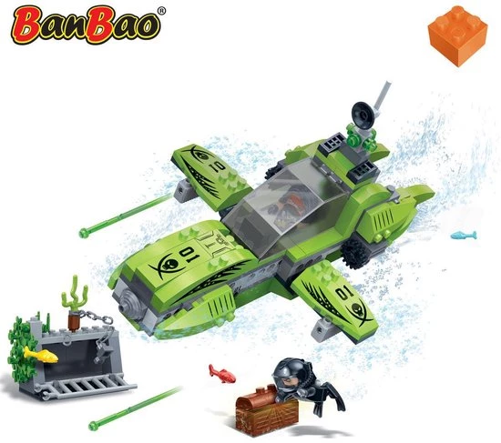 Met deze onderzeeƫr en toebehoren beleef je een avontuur onderwater. Ga bijvoorbeeld op zoek naar de schat die honderden jaren op de zeebodem terecht is gekomen of laat de duiker veilig tussen de haaien zwemmen in de onderwaterkooi. Ben je ingehuurd voor een geheime missie om te spioneren? Kijk dan uit voor de vijand en vuur een torpedo af om jezelf te beschermen!