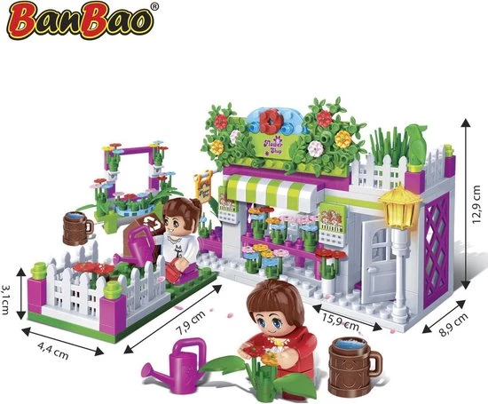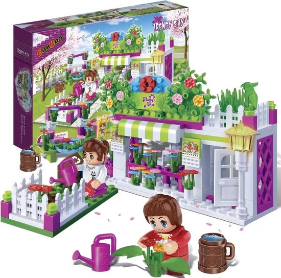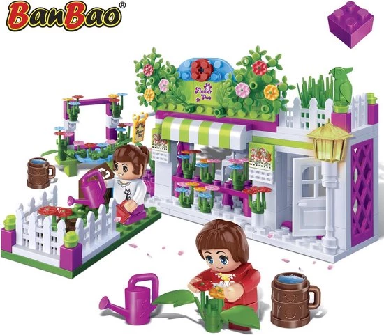 BanBao Trend City Bloemenwinkel 6116. Hou jij ook zoveel van bloemen? De Bloemenwinkel zoekt een hulp die op de winkel kan letten en de bloemen kan verzorgen. Heb jij zin om een dag samen met je vriendin in de bloemenwinkel te werken? Let er wel op dat je de bloemen genoeg water geeft met dit warme weer. Deze leuke, educatieve bouwset voor meiden bestaat uit 1 bloemenwinkel, 2 figuren en diverse acessoires. Deze speelgoedset bestaat uit 252 bouwstenen.