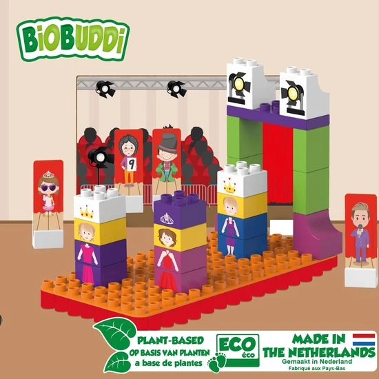 Organiseer je eigen Catwalk en kies de mooiste kleren uit voor jouw modellen met onze nieuwste BiOBUDDI speelset. De leerzame en leuke speelset Catwalk bevat 27 bouwblokken, 5 uitdrukkaartjes met nieuwe personages, zoals de jury leden en onze prachtige modellen, en een gloednieuw achtergrond. Alle kaartjes zijn verwerkt in de 100% recyclebare verpakking! Onze speelgoedblokken zijn speciaal gemaakt door kinderen van 1.5 tot 6 jaar, gemaakt van resten uit de suikerriet plant. De blokken zijn milieuvriendelijk, recyclebaar, duurzaam en ook uitwisselbaar met andere merken. Het helpt kinderen met het ontwikkelen van zowel motorische, cognitieve en creatieve vaardigheden tijdens het spelen. Met BiOBUDDi laat je zien dat je verantwoord omgaat met de planeet en toekomst van de aarde. Daarnaast staat BiOBUDDi garant voor uren veilig en verantwoord speelplezier.