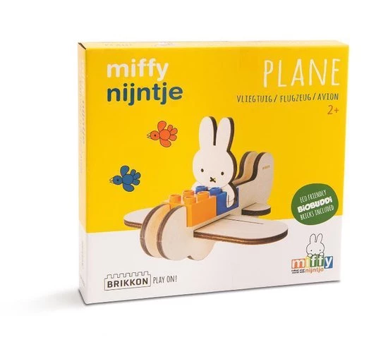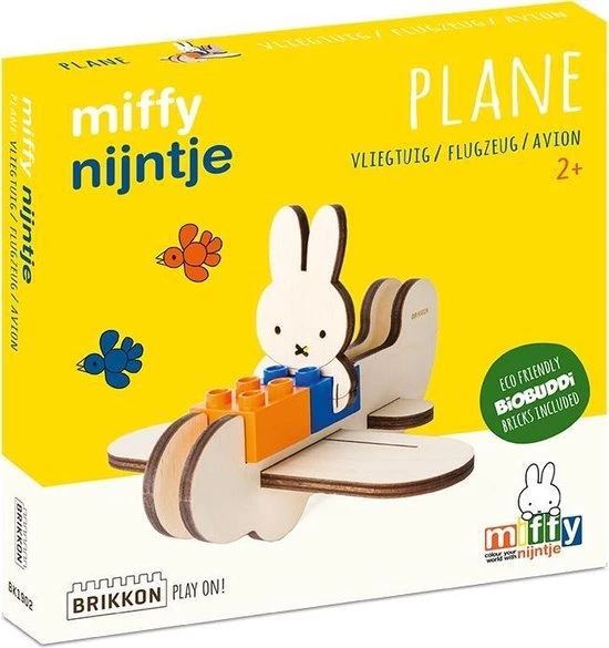 Brikkon 1902 nijntje vliegtuigMet de houten Brikkon bouwplaten zet je snel een nijntje wereld in elkaar. Daarop kun je zelf doorbouwen met de meegeleverde duurzame BiOBUDDi stenen én je eigen bouwstenen.