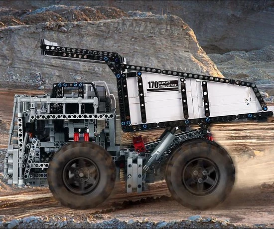 Deze Miningtruck kiepwagen met 2044 onderdelen is gebaseerd op het buitenontwerp van de Miningtruck. Het uiterlijk van de echte auto is sterk hersteld.