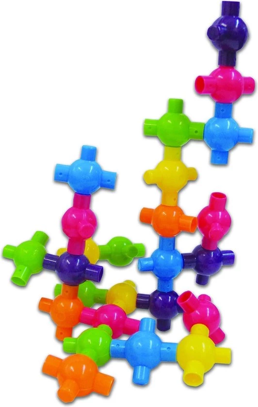 Kleurrijk en buigzaam materiaal, barst-resistent, klikt in elkaar om de mooiste constructies te maken. Speciaal ontworpen om de cognitieve ontwikkeling te stimuleren.