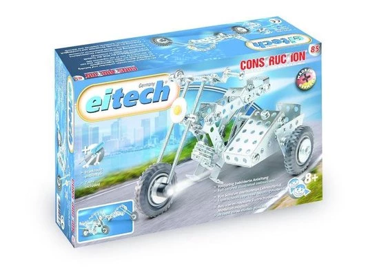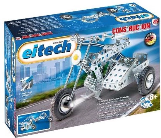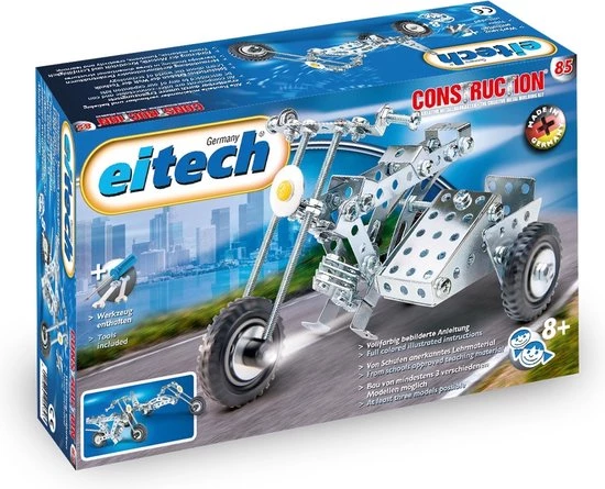 Met deze klassieke Eitech bouwdoos bouw jezelf een prachtige motorfiets. Volop bouwplezier! Inclusief gereedschap en een geïllustreerde handleiding. Erkend educatief materiaal.