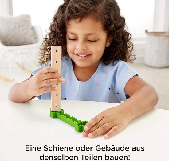 • ​Meer dan 35 onderdelen, waaronder houten baanstukken, glijbanen, kratten, een vrachtwagen en nog veel meer