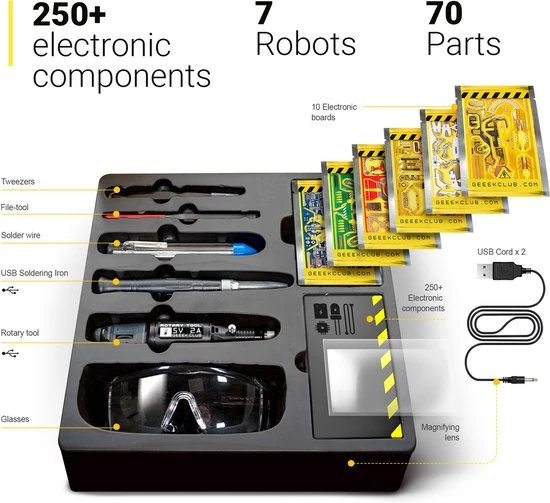 Deze op stammen geïnspireerde voodoo-bots worden op zichzelf al ‘een kunstwerk van techno-kunst’ genoemd. Maar het mooiste is dat je zelf mee mag bouwen met het meegeleverde soldeerpistool en strijkijzer. Elektrotechniek en werktuigbouwkunde, hier kom je!