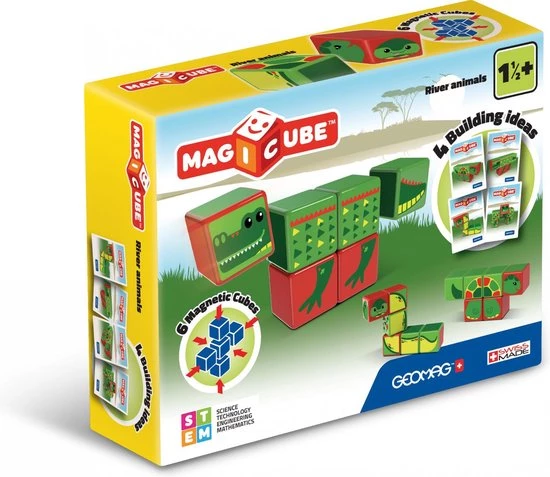 De Geomag MagiCube is speciaal ontwikkeld voor de allerkleinsten. Met deze set kunnen kinderen de klassieke kubus ontdekken. Deze set met dierenthema bestaat uit zes magnetische blokjes waarmee je vier verschillende rivierdieren kunt bouwen.