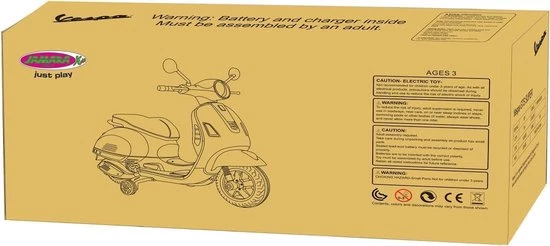 Vespa E-Scooter geschikt voor kinderen tussen de 3 en 6 jaar. De scooter bereikt een snelheid van 3-7 km/u.