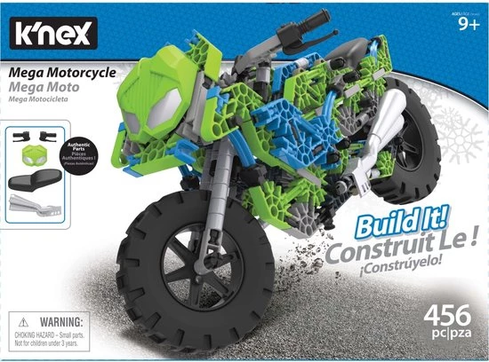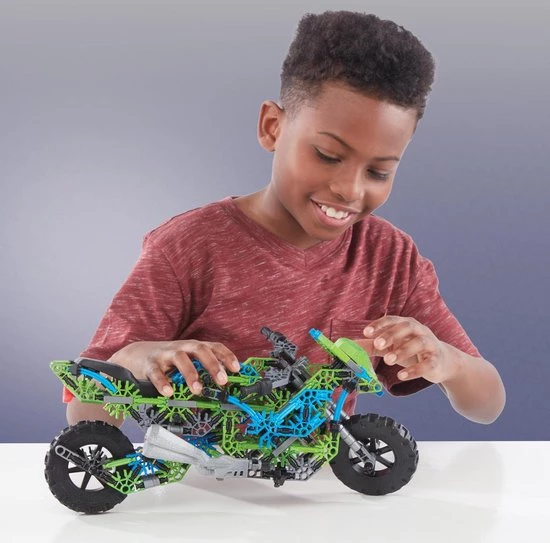 Met deze bouwset van K’NEX komt de verbeelding van je kind tot leven, een grote en fantastisch snelle motor die je helemaal zelf in elkaar kunt zetten! Het felle groene met blauwe voertuig rijdt op draaiende wielen en is gemaakt van kleurrijke staafjes en koppelstukken waardoor je met een “klik” de onderdelen samen kunt brengen. De motor bevat ruim 456 onderdelen en kan ieder ander voertuig zeker afstoten van de race. Bereid je kind voor op hun technische vaardigheden en leer ze de basis van het bouwen. De motor werkt op batterijen.