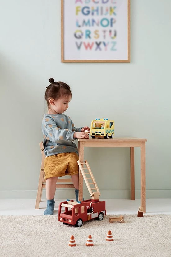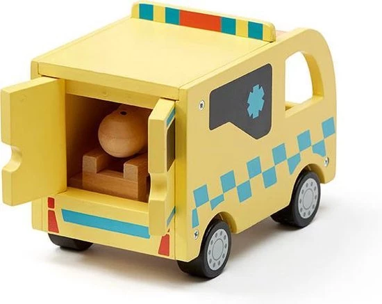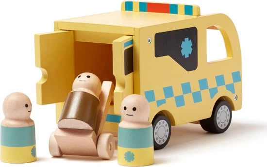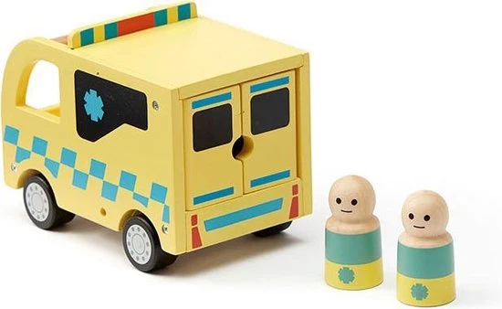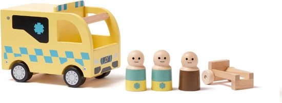 Onwijs mooie houten ambulance met poppetjes uit de Aiden serie van het Zweedse merk Kids Concept.