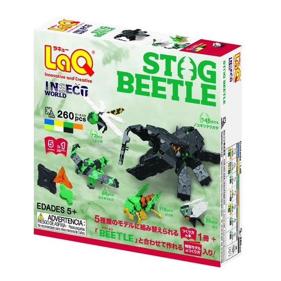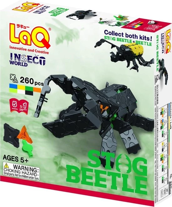 Uitgebreide LaQ set om verschillende 3D modellen van insecten te bouwen. Bevat 260 LaQ stukjes in 7 kleuren. Inclusief 5 bouwplaten voor verschillende insecten.