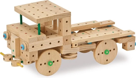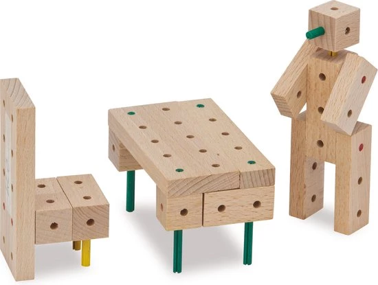 Precisie-geboorde blokken pasklare verbinding staven, assen en wielen – een verscheidenheid van de bouw, die generaties lang jong en oud hebben gefascineerd.