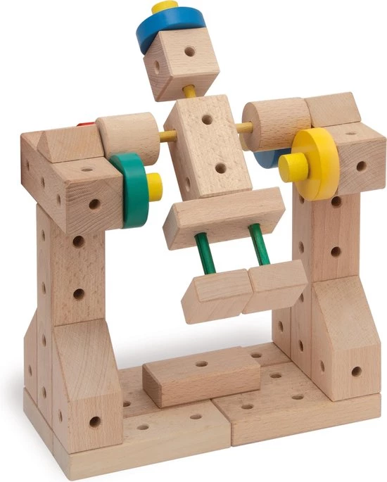 De afmetingen van de houten blokken van 4×4 cm en de staafjes met een diameter van 8 mm zijn perfect geschikt voor de grootte van kleine kinderhanden.