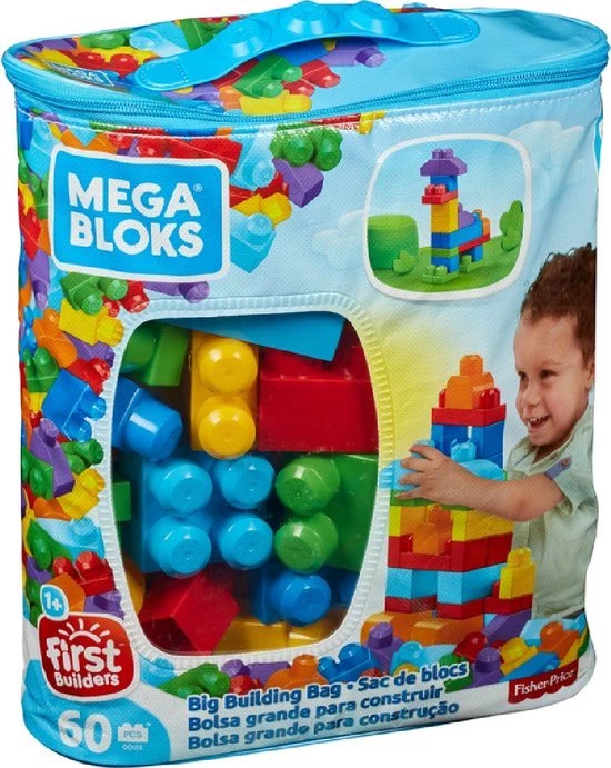 Na het spelen kan alles worden opgeborgen in de milieuvriendelijke, pvc-vrije tas. Geschikt voor kinderen vanaf één jaar! Kenmerken: • 60 First Builders blokken voor urenlang speelplezier • Klassieke set blokken in vrolijke kleuren • Alles kan worden opgeborgen in de milieuvriendelijke, pvc-vrije tas – makkelijk mee te nemen! • Kan worden gecombineerd met andere Mega Bloks First Builders producten voor nog meer speelpret