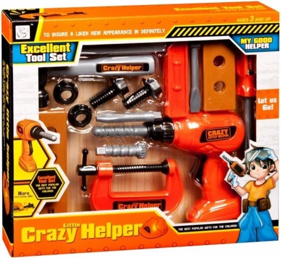 Dankzij het Crazy Little Helper gereedschappen pakket zal het kind de eerste jaren al de toepassing en mogelijkheden van eenvoudige hulpmiddelen kennen, waardoor ze in de toekomst vindingrijker zullen worden.De kit bevat: doe-het-zelf timmerman gereedschap en accessoires.