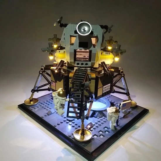 De maanlander Eagle bestaat uit twee delen: De onderste daaltrap, en de bovenste stijgtrap. Lunar Module Eagle bestaande uit landingsfase en geavanceerde opkomstmodule. Gestructureerde opkomstmodule besturingsjets, antennes, landingsgestellen, trappen en ladders.