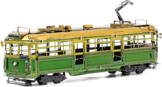 De Melbourne W-Class Tram bestaat uit twee dunne metalen platen. Knip of draai hier eerst alle voorgesneden onderdelen uit. Plooi de onderdelen in de juiste vorm en zet twee stukjes aan elkaar door lipjes of pinnetjes door een gleufje te schuiven. Je kan dit model volledig in elkaar zetten zonder lijm! Een fijne knip- en punttang is wel handig om te gebruiken. In de verpakking staan de handige instructies steeds stap voor stap uitgelegd.
