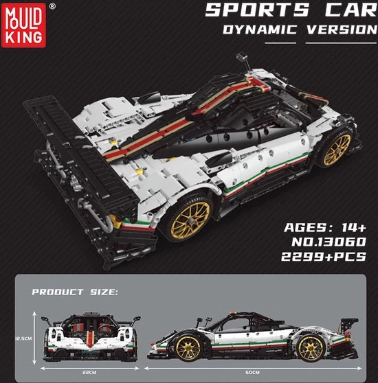 De gemotoriseerde uitvoering van de Mould King 13060 Supercar.