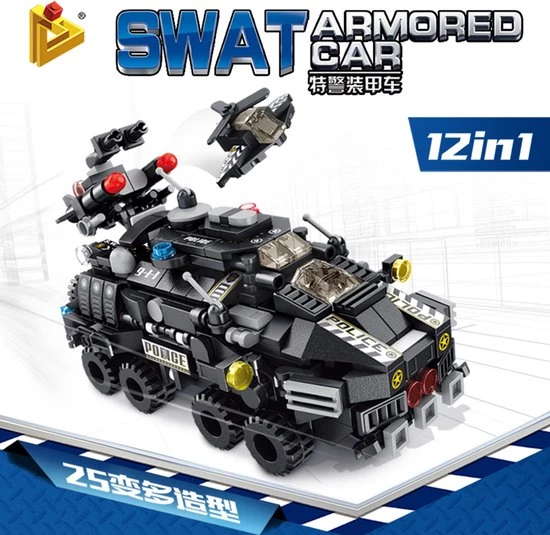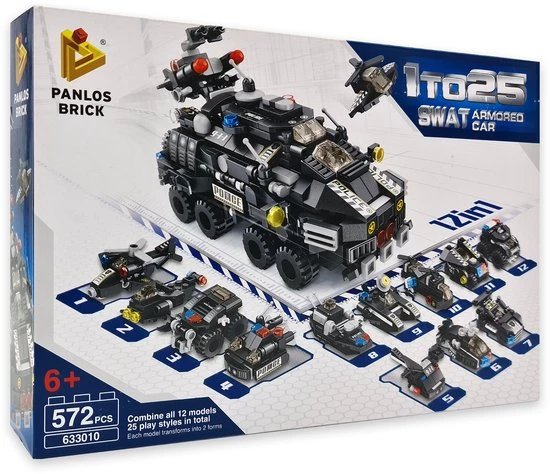 Of wil je bij de ME? Of wil je bij de oproerpolitie? Dan moet je misschien wel met van allerlei voertuigen kunnen rijden… én vliegen! Deze bouwset van Panlos is een ME-set waar je van twaalf voertuigen, nog weer eens twaalf gevechtsvoertuigen maakt. En van alles bij elkaar kun je een grote ME-pantserwagen maken! In totaal maak jij met deze constructieset 25 geweldige machines!