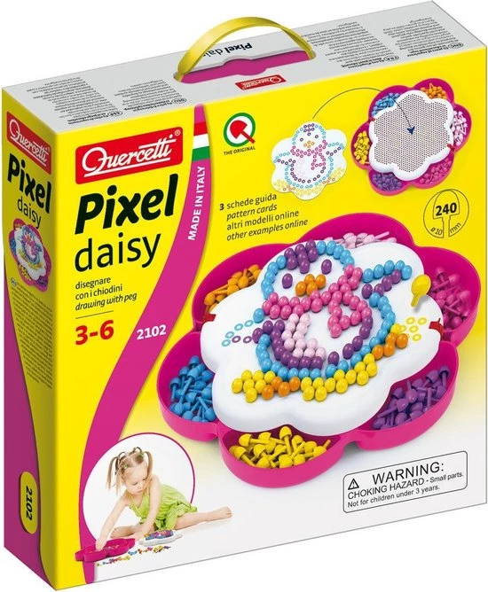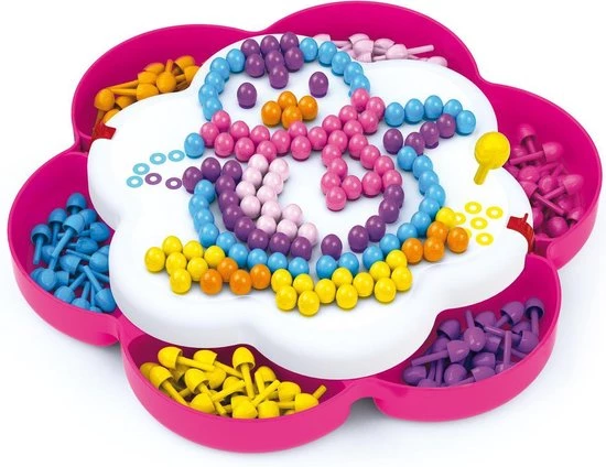 Ontwerp de mooiste figuren door de kleurrijke pinnen op de juiste plek in het bord te drukken. Kinderen ontwikkelen hiermee hun oog-handcoördinatie en het herkennen van kleuren. Volg de ontwerpen uit het voorbeeldboek of laat jouw fantasie het werk doen. In de handige bakjes sorteer je makkelijk alle pinnen op kleur.