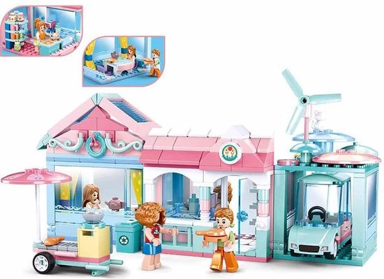 In dit nieuwe huis van de toekomst hebben we geen gas meer, Alles gaat via wind en zonne-energie. Ook de auto wordt opgeladen door windenergie. Dit huis kan je uitbreiden met set MB38-B0821 om een extra etage of aanleunwoning te maken.