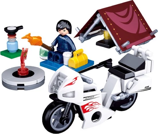 Met Sluban blokjes kun je jouw creativiteit pas echt uiten! De thema’s zijn zeer divers waardoor er voor iedereen wat leuks tussen zit. De bouwsteentjes passen perfect samen met vele andere merken. Met deze bouwset bouw jij een kamperende motorrijder. Supergaaf!