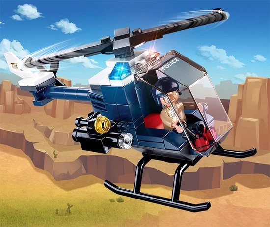 Deze super vette helikopter zorgt ervoor dat jij als politieagent overal op tijd komt. Bouw de helikopter snel in elkaar, zodat je kan gaan helpen!