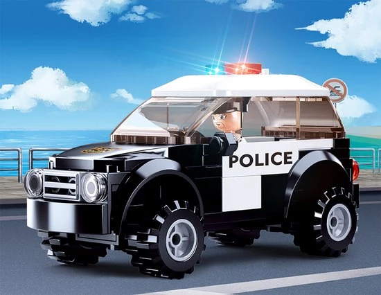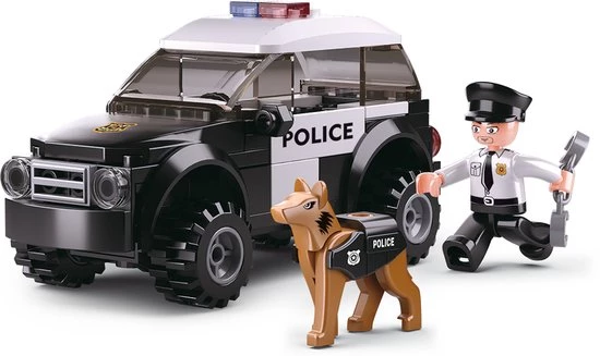 Met deze stoere politiewagen pak je alle boeven op! Heeft de politiehond een spoor gevonden? Snel op zoek naar de boeven. Niemand ontsnapt van deze speurhond van de Sluban hondenbrigade.