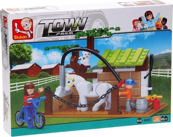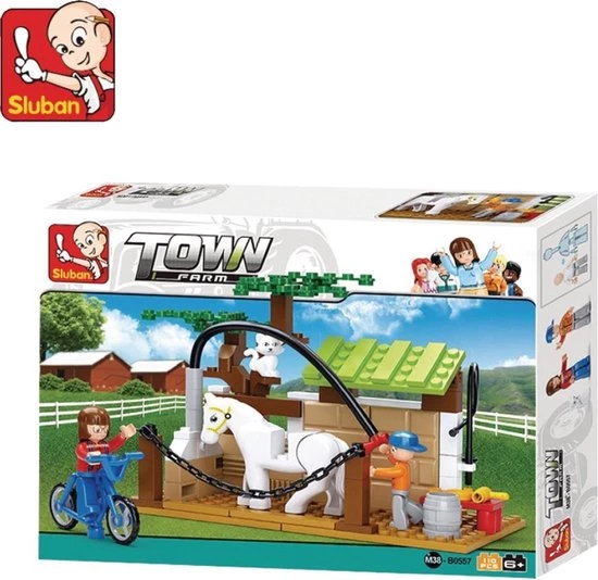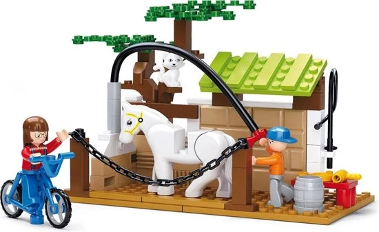 Het favoriete klusje van de boerin op de boerderij is het wassen van de paarden in de Sluban Paardenwasplaats. Help je mee? Sluban bouwsteentjes passen op andere merken bouwsteentjes. De bouwsets van Sluban zijn leuk én educatief kinderspeelgoed voor zowel jongens als meisjes.