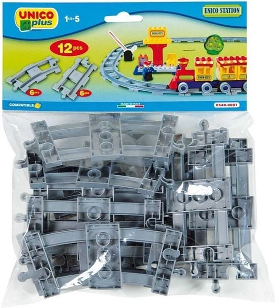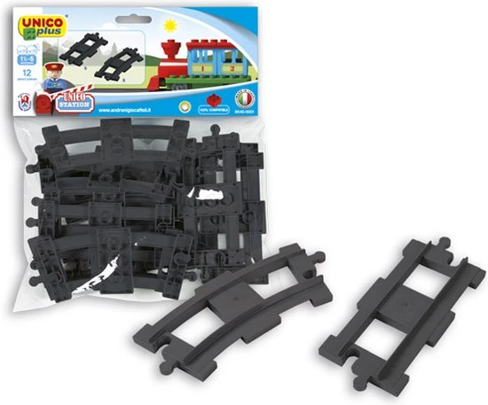 Met deze treinrailsonderdelen breid je jouw treinbaan uit tot een geweldig creatie. De set bevat rechte en gebogen baanonderdelen zodat je naar hartenlust kunt bouwen en variëren. Alle bouwonderdelen van Unico plus zijn overigens te combineren met bouwblokken van andere bekende merken!