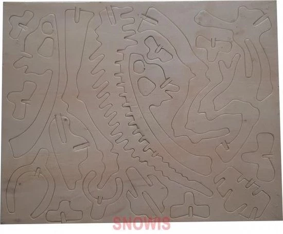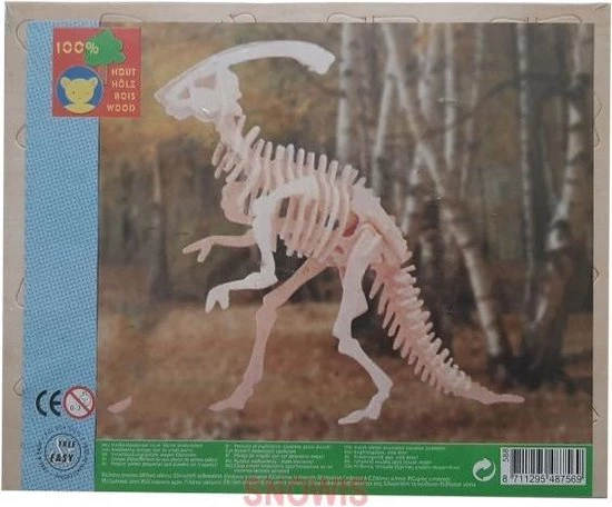 Knutsel jij straks je eigen Dino? Druk de onderdelen gemakkelijk uit het houten frame en bouw heel gemakkelijk je eigen dino.