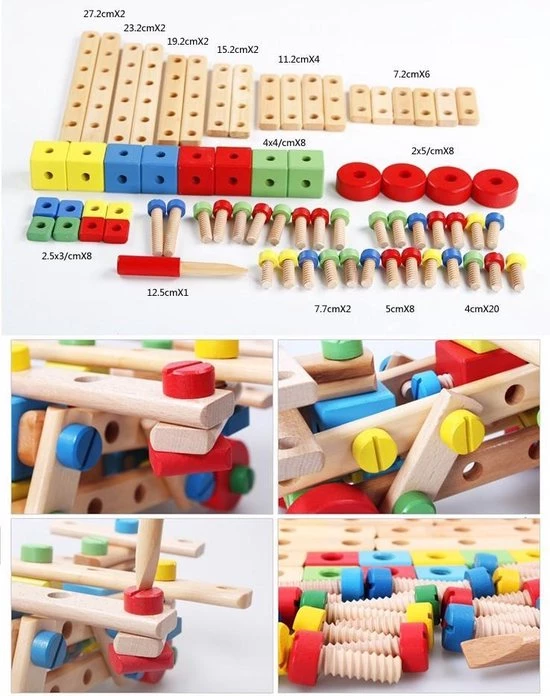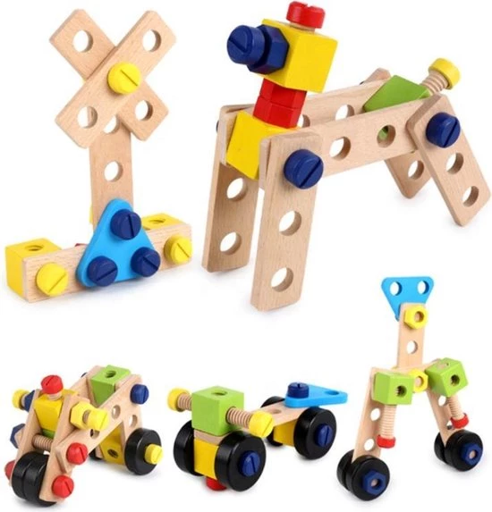 ZaciaToys Houten Bouwset Zelf Assembleren – Constructiespeelgoed – Montessori – Educatief Speelgoed