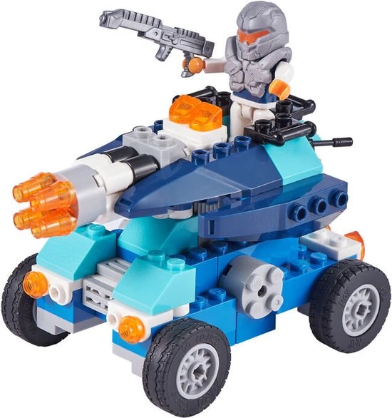 Bouw erop los met meer dan 300 bouwstenen. Maak je eigen fort en ga het gevecht aan met 1 van de 3 poppetjes.
